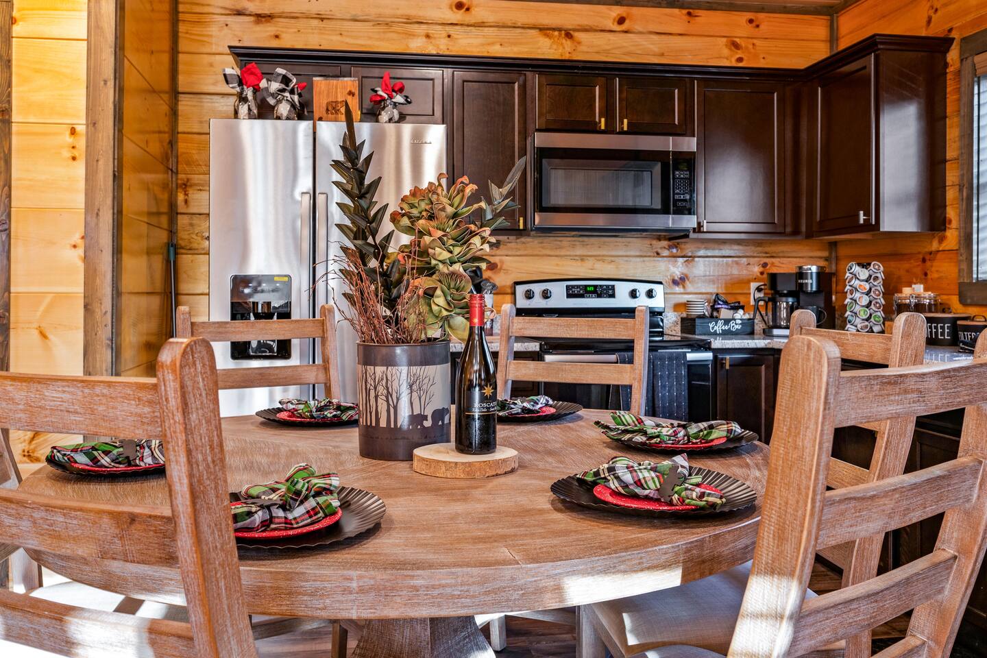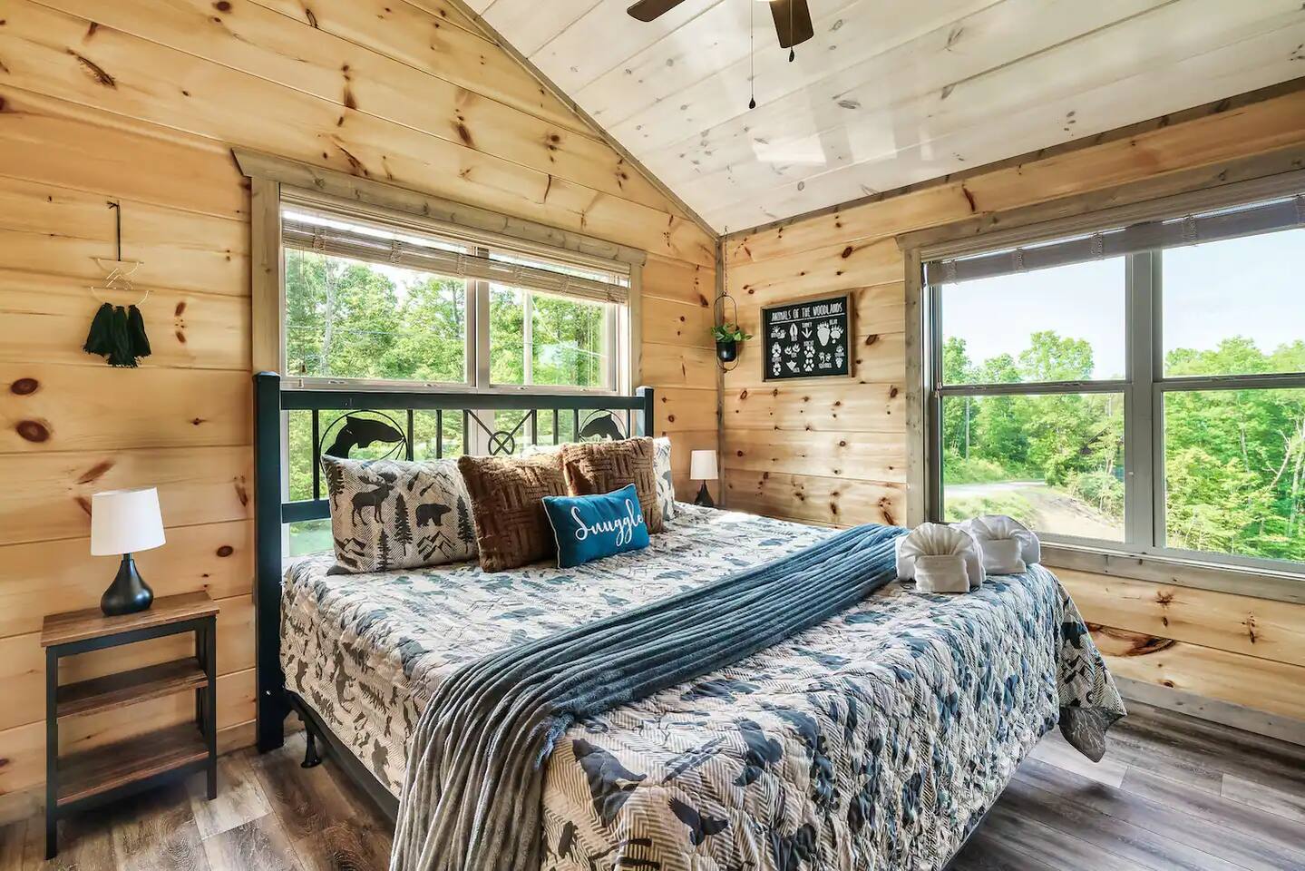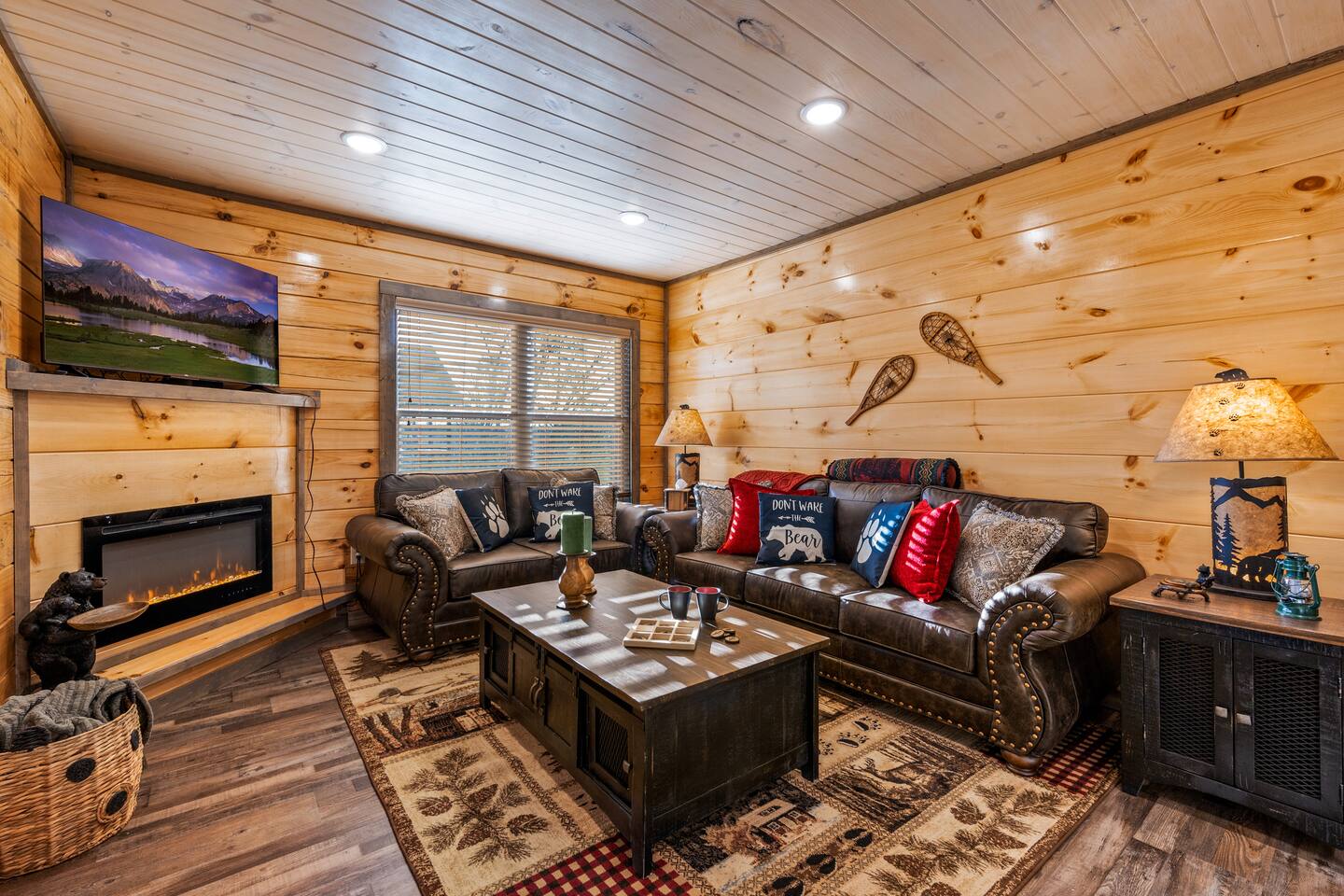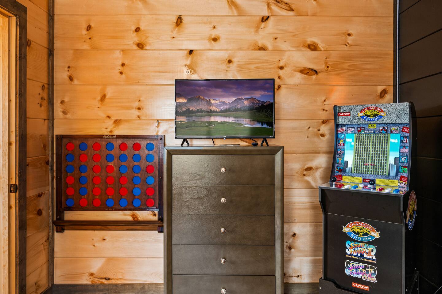 9 Mins Drive to Soaky Mountain Waterpark 9 Mins Drive to Convention Center 10 Mins Drive to Wilderness 20 Mins Drive to Buc-ee’s 25 Mins Drive to Dollywood 32 Mins Drive to Anakeesta 37 Mins Drive to Parkway With Dollywood, The Island, and Soaky Mountain Waterpark only minutes away, you’ll never be short on fun activities to take part in. Whether it's the fully-equipped kitchen, the electric fireplace, the game area, the indoor pool, and the TVs in each bedroom, we promise you'll find something to love about "Cowboy Slingers" Cabin ✷ Outdoor hot tub ✷ Indoor pool with an insta-worthy wall ✷ 4 bedrooms: 2 king-size beds and 1 queen-size bed ✷ 2 full bathrooms, 2 half bathrooms ✷ 3 full decks for entertainment ✷ Modern and cozy living room with electric fireplace ✷ Open concept and spacious kitchen ✷ Smart TV in each bedroom ✷ Multiple arcade machines and board games ✷ Flat driveway with 3 parking spaces INDOOR POOL + HOT TUB Get ready to make a splash in our indoor pool! Located on the lower level, the pool is a favorite among kids and adults alike, with a depth of 4ft at the deep end. Relax in the comfortable lounge chairs while keeping an eye on the little ones as they swim and play. After your swim, step out onto the spacious outdoor deck and soak in the beautiful natural surroundings from the hot tub. With plenty of space to unwind and breathe in the fresh mountain air, you'll feel rejuvenated and refreshed. Come experience the ultimate in relaxation and fun at our mountain retreat, complete with an indoor pool and outdoor hot tub. LIVING ROOM & KITCHEN After a long day of exploring outside, settle down on one of the comfy couches facing the electric fireplace in the living room, and turn on the TV to find a movie for the whole family. The fully-equipped kitchen comes prepared with all the basics and amenities you could think of, including a Keurig 12-cup drip coffee maker and everything you may need to cook a full meal. Make the most out of your stay and head to the community pool to cool off, relax, and refresh. The community pool is open daily from 8 AM to 8 PM (open Memorial Day through Labor Day). You will need pool ID tags, which are required to let you access the pool. PARKING Never worry about parking! There's free parking space for up to 3 cars directly in front of the cabin. Please note that the ladybug season in the Smokies is from Oct to Dec! We have a monthly pest control service, and you may see dead ladybugs inside as a result of the treatment, and this is very common in the mountains. We appreciate your understanding, and a vacuum is available for your use as needed. DISTANCE FROM MAJOR LOCATIONS 9 Mins Drive to Soaky Mountain Waterpark 9 Mins to Convention Center 10 Mins to Publix Supermarket 11 Mins to Starbucks 14 Mins to Waffle House 15 Mins to Popeye’s 20 Mins to Buc-ee’s 22 Mins to The Island 25 Mins Drive to Dollywood 26 Mins drive to The Island in Pigeon Forge 32 Mins Drive to Anakeesta 37 Mins Drive to Parkway 40 Mins Drive to Gatlinburg Please note that the ladybug season in the Smokies is from Oct to Dec! We have a monthly pest control service, and you may see dead ladybugs inside as a result of the treatment, and this is very common in the mountains. Please also note that due to being in the wilderness, you may encounter a bug, small critters, or even a bear. We appreciate your understanding, and a vacuum is available for your use as needed.