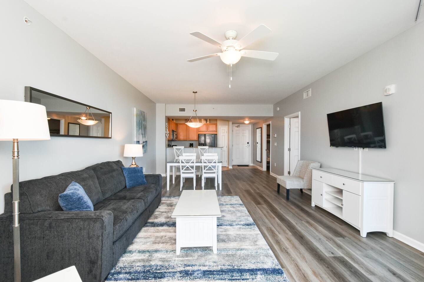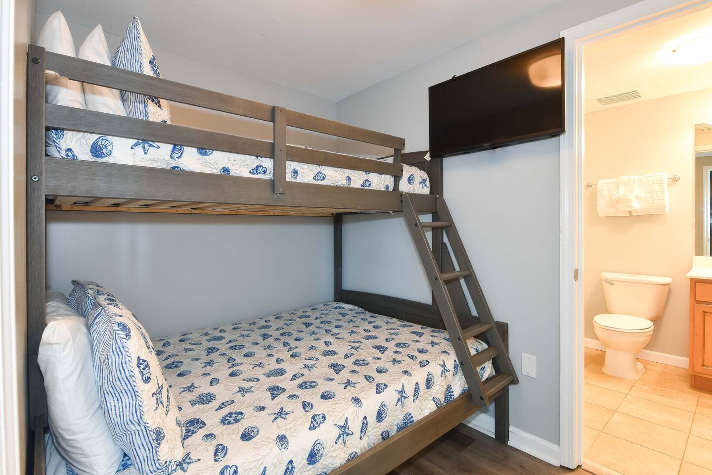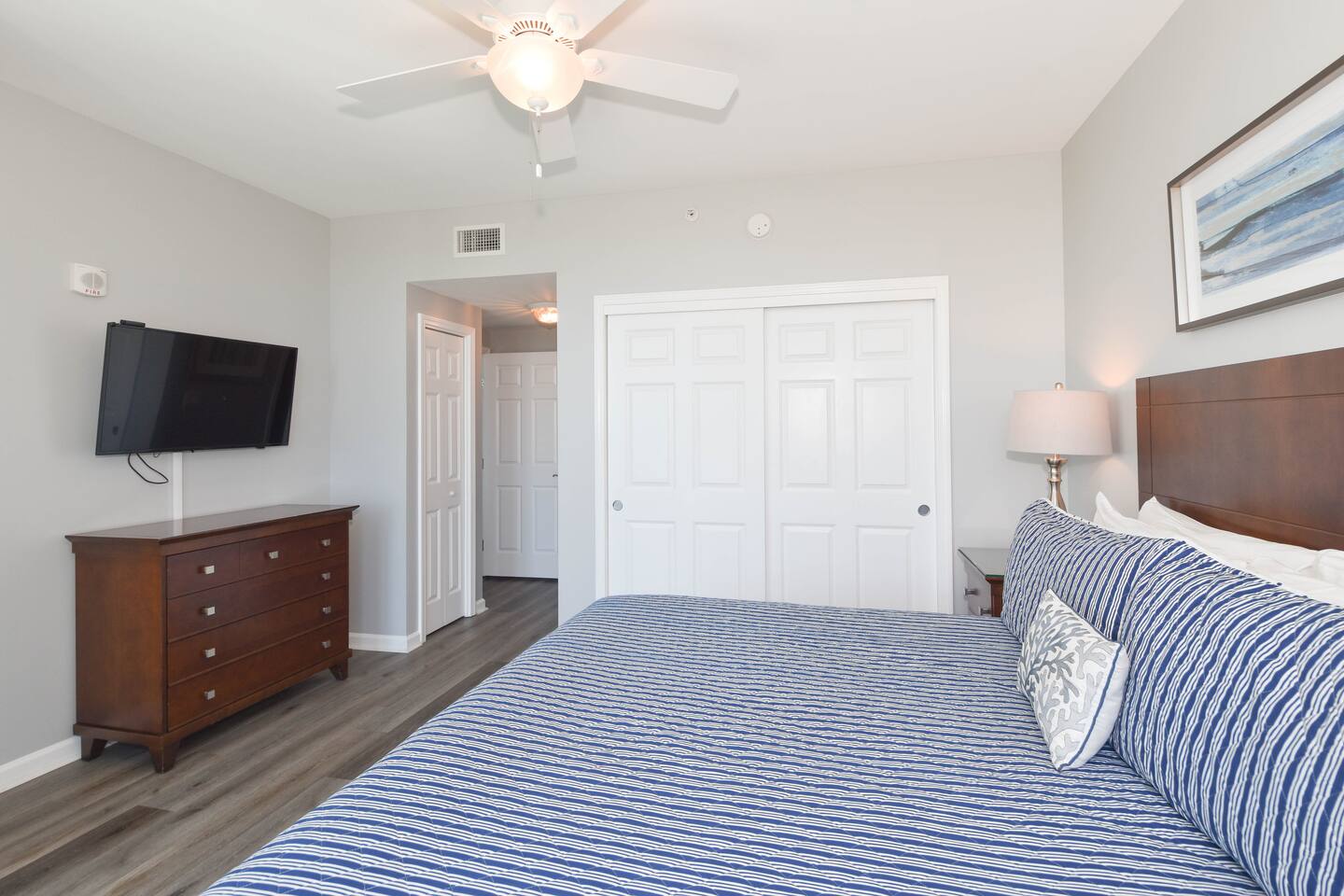 Welcome to Emerald Escape 2410 – Your Perfect Destin Getaway! Emerald Escape 2410 is a spacious 2-bedroom, 2-bathroom junior suite condo located in the West Tower on the 4th floor of The Palms of Destin Resort. This 970 sq. ft. condo comfortably accommodates up to 6 guests and is designed for relaxation and convenience. Rooms & Spaces • Master Bedroom – Features a king bed, a flat-screen TV, and an ensuite bathroom for ultimate privacy and comfort. • Guest Bedroom – Includes a twin-over-full bunk bed, perfect for families or groups. • Living Room – A welcoming space with a queen sleeper sofa, a flat-screen TV, and direct access to the private balcony, where you can enjoy breathtaking sunset views over Destin. • Fully Equipped Kitchen – Stocked with everything needed to prepare meals, including a stove, oven, microwave, refrigerator, Keurig coffee maker, and cooking essentials. • Dining Area – A dining table for meals and gatherings, conveniently located near the open-concept living space. • Two Full Bathrooms – The master has an ensuite bathroom, while the second bathroom is easily accessible from the guest bedroom and common areas. • In-Unit Washer & Dryer – So you can pack light and refresh your clothes during your stay. Resort Amenities & Location As a guest at The Palms of Destin Resort, you’ll enjoy access to: ✔️ Lagoon-style pools with waterfalls ✔️ Hot tub & heated pool ✔️ Fitness center & sports courts (tennis, basketball) ✔️ Playground & on-site dining ✔️ Complimentary beach shuttle for easy access to Destin’s famous white-sand beaches ✔️ 24/7 security services Centrally located, Emerald Escape 2410 is just minutes from top restaurants, shopping, and water activities, making it the perfect home base for your Destin adventure. Important Notes: 🚫 No pets allowed for a clean and allergy-friendly stay. 🚭 No smoking or vaping in the condo or on the balcony (designated smoking areas available at the resort). 🔞 Minimum age to book is 25 (ID required at check-in). 💲 Resort fee of $25/night included in your booking. Whether you're here for a family vacation, a romantic escape, or a fun getaway with friends, Emerald Escape 2410 offers the perfect blend of comfort, style, and resort amenities. We look forward to hosting you in beautiful Destin! 🌴☀️