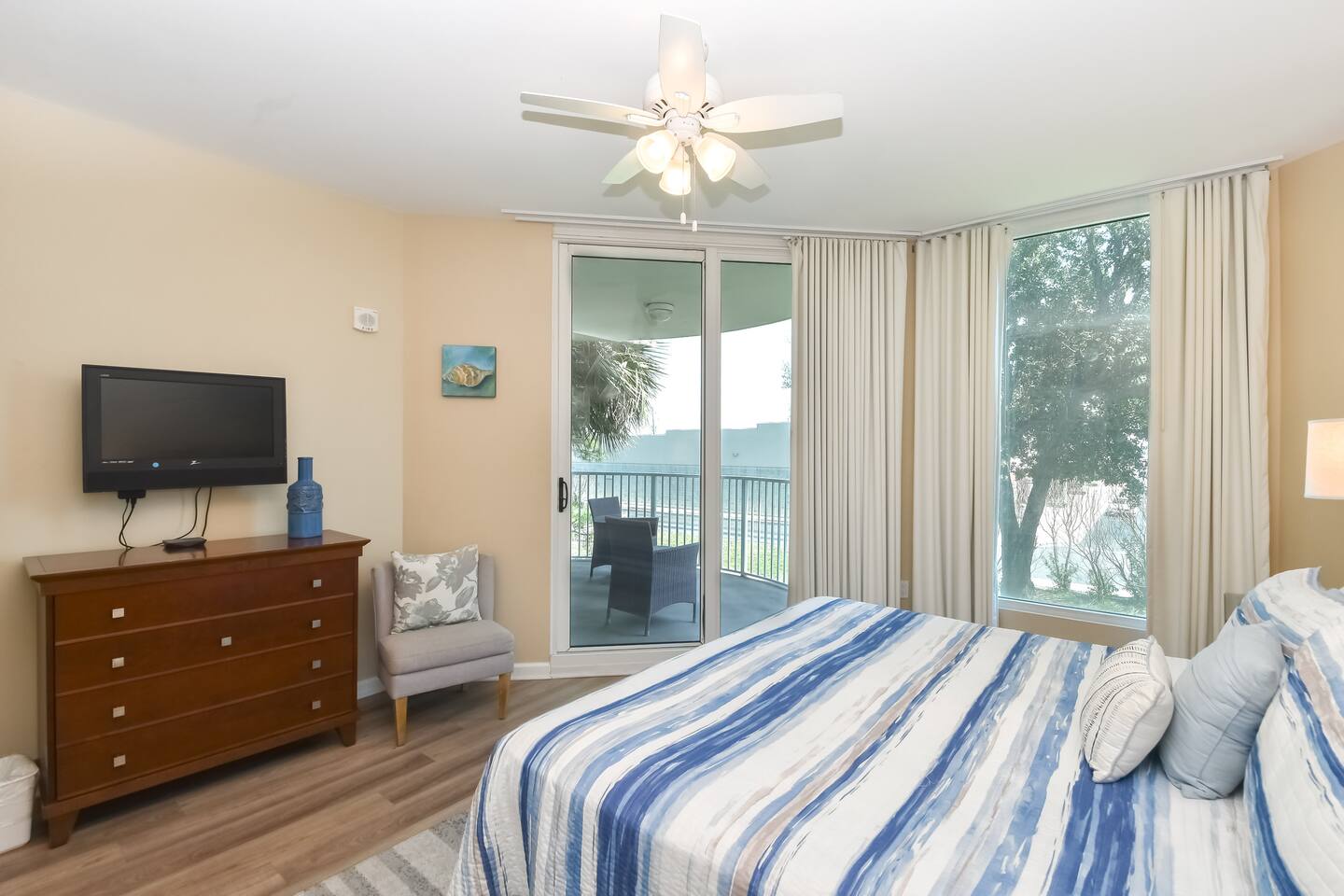 Emerald Escape 1208 – Your Perfect Destin Getaway! Welcome to Emerald Escape 1208, a spacious 2-bedroom, 2-bath condo at The Palms of Destin Resort. Located in Building 1 on the 2nd floor, this east-facing unit offers stunning morning sun from your private balcony. With 970 sq. ft. of living space, this condo comfortably sleeps 6 guests and provides everything you need for a relaxing and fun-filled vacation. Condo Features: • Master Bedroom: King bed with an ensuite bathroom • Guest Bedroom: Twin-over-full bunk bed • Living Room: Queen sleeper sofa • Fully Equipped Kitchen: Cook and dine with ease • In-Unit Washer & Dryer: Pack light and refresh your clothes • Flat-Screen TVs Throughout: Stay entertained • Private Balcony: Enjoy the fresh air and morning sun Resort Amenities: The Palms of Destin Resort is perfect for those seeking an active beach vacation. Enjoy: • Lagoon-style pools with waterfalls • Hot tub & heated pool • Fitness center & sports courts (tennis, basketball) • Playground & on-site dining • Complimentary beach shuttle for quick access to the white-sand beaches • Close to top restaurants, shopping, and water activities Whether you're here for a family vacation, a couples’ retreat, or a weekend escape, Emerald Escape 1208 is your ideal home away from home. No pets allowed for a clean and allergy-friendly stay. Book your getaway today!