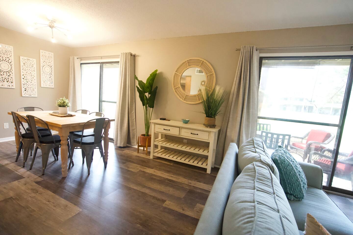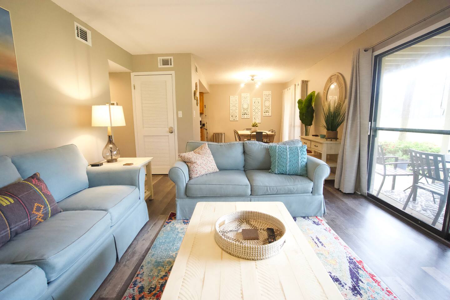 Our property boasts two bedrooms, both featuring comfortable queen-sized beds that are perfect for a good night's sleep. There is also a sleeper sofa in the living room, allowing the unit to comfortably accommodate up to six guests. The unit is complete with two bathrooms, ensuring that there is plenty of space and privacy for everyone. You'll find that our living room is tastefully decorated and features ample seating, making it a great space for relaxing after a day of exploring the local area. The kitchen is fully equipped with everything you need to cook a delicious meal, including a stove, oven, refrigerator, and dishwasher. You'll also find all the necessary utensils, cookware, and dishes to make your stay as comfortable as possible. Step outside and enjoy the serene beauty of the Seascape Resort from the comfort of our private patio. This is the perfect spot for sipping on your morning coffee or enjoying a glass of wine in the evening. As a first-floor unit, our Airbnb is easily accessible and convenient for all guests. Additionally, the location on the Seascape Resort 11th fairway ensures that you'll be surrounded by stunning natural beauty throughout your stay. We look forward to hosting you and making your visit to Seascape Resort a memorable one!